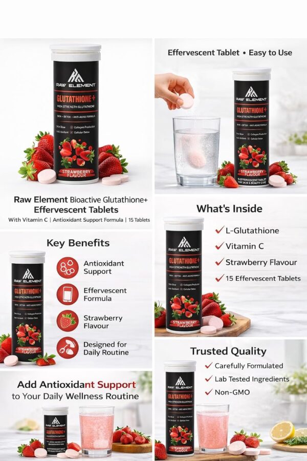 Bioactive Glutathione+ Effervescent Tablets for Radiant Skin High-Strength L-Glutathione | Vitamin C | Antioxidant Detox Formula | Skin Glow & Anti-Pigmentation | Strawberry Flavour | 15 Tablets (1, 15)