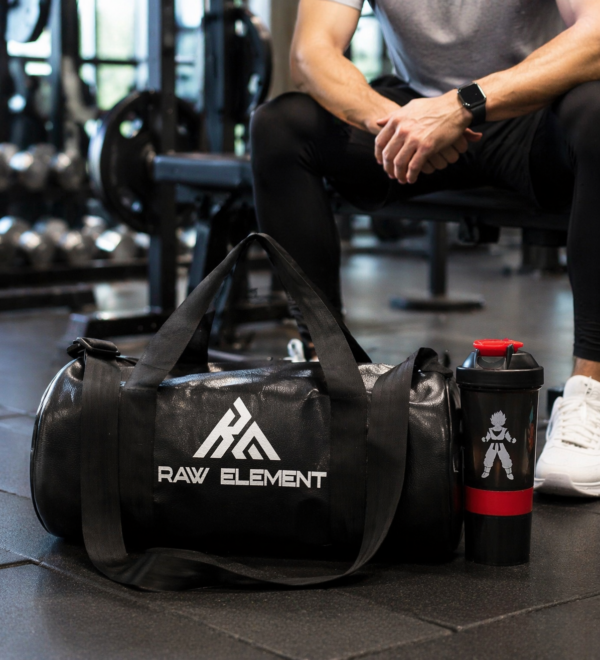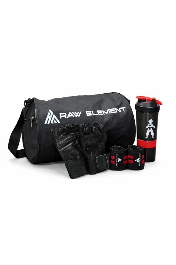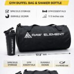 Gym Bag Combo Set with Shaker & Resistance Band | RAW ELEMENT Fitness Kit | Durable Sports Duffel Bag for Gym, Travel & Workout