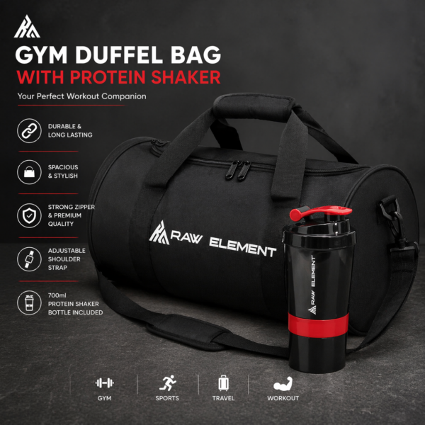 Gym Shaker & Gym Bag Combo | Fitness Essentials Set for Men & Women | Durable Sports Duffel with Protein Shaker