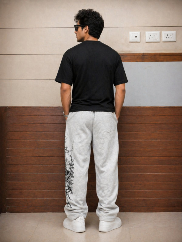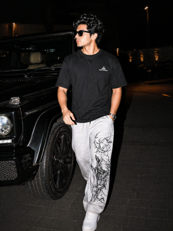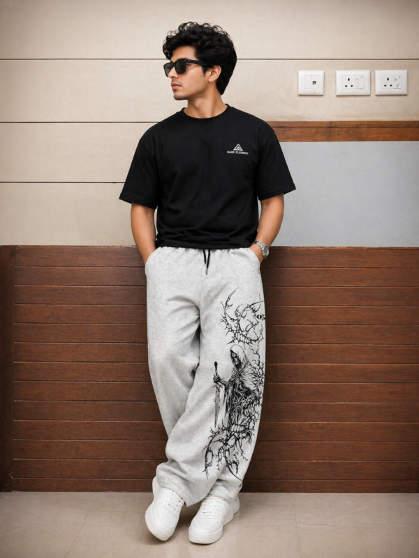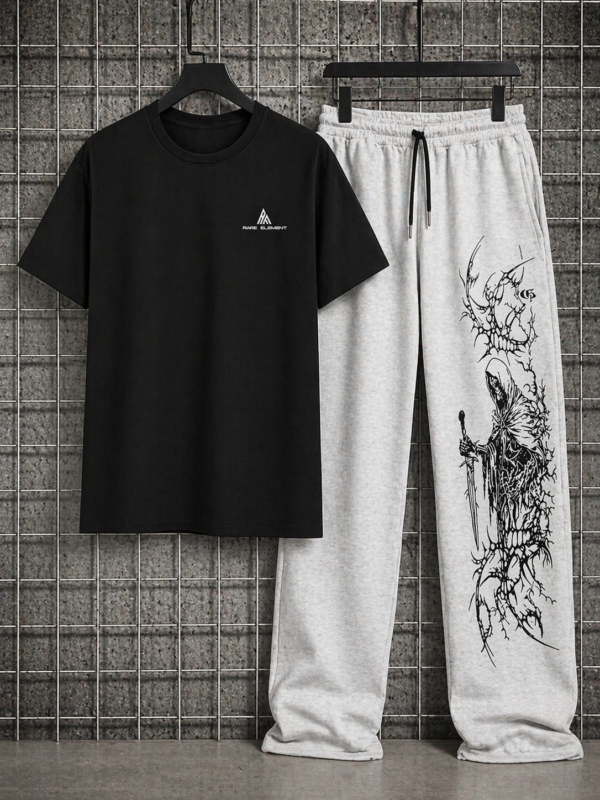 Men’s Oversized Black T-Shirt & Printed Grey Jogger Set | Casual Streetwear Combo for Men