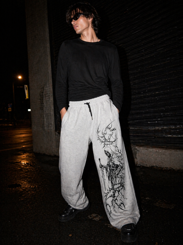 Step up your streetwear game with these stylish grey track pants featuring a bold graphic print design. Made from a soft and breathable cotton blend fabric, these joggers provide maximum comfort for all-day wear. The elastic waistband with adjustable drawstring ensures a perfect fit, while the relaxed fit allows easy movement.