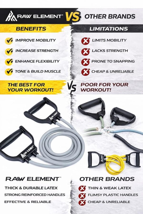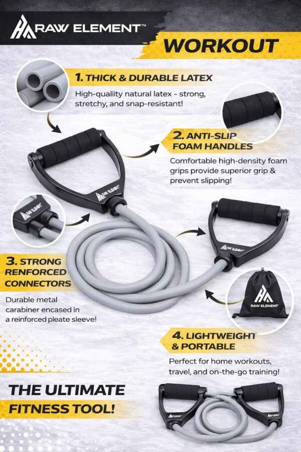 Raw Element Exercise Band or Resistance Band for Men and Women – Heavy-Duty Pull Rope for Stretching, Home Gym, Strength Training – Tube Exerciser with Foam Grip